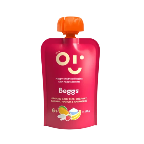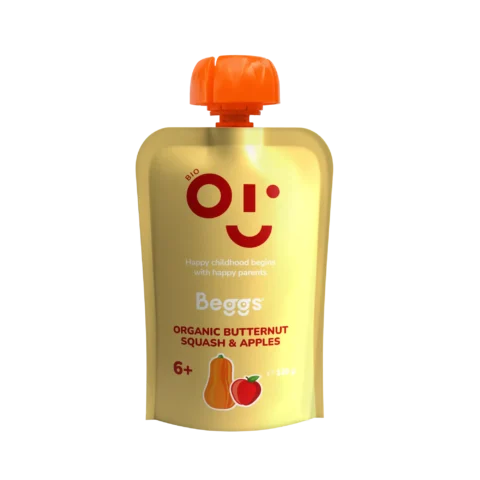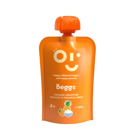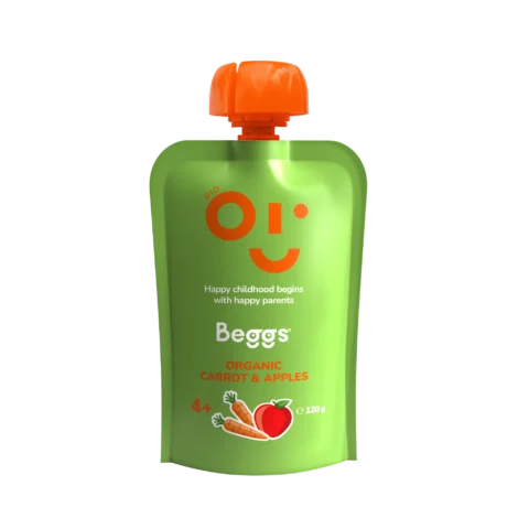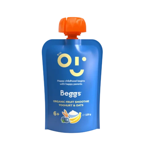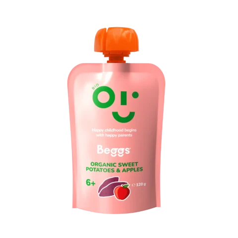 Beggs smiling pouches provide the child with interesting combinations of fruits and vegetables in organic quality. They are suitable from the end of the 6th month, when your baby can sit with minimal support, controls the head, lifts objects and shows interest in food.