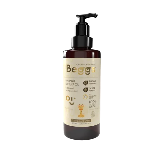 To clean the skin, it is ideal to use Beggs Baby Shower Oil without perfume, which, thanks to its simple formulation and gentle composition, does not contain potentially irritating substances. This type of oil is ideal for children with eczematous or sensitive skin, as it gently cleanses and contains oils that protect the skin from drying out.
